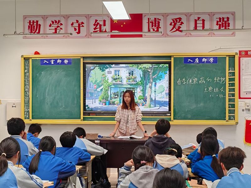 在各班召开的专题班会上,班主任们通过生动的PPT、案例分析、互动问答等多种形式,进一步加深了同学们对传染病预防的理解。班会内容不仅涵盖了“七步洗手法”的正确操作、口罩的科学佩戴等实用技能,还模拟了教室出现呕吐物等突发情况的应急处置流程,让同学们在实践演练中掌握了科学的防护方法。同学们积极互动,分享健康小贴士,现场气氛热烈。