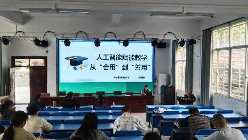 为推进教育数字化转型,提升教师智能教学能力,4月7日,汉川市分水镇新农小学举办“AI+教育”应用技能培训。本次培训以“人工智能赋能教学:从‘会用’到‘善用’”为主题,由学校骨干教师陈庭秋老师主讲。