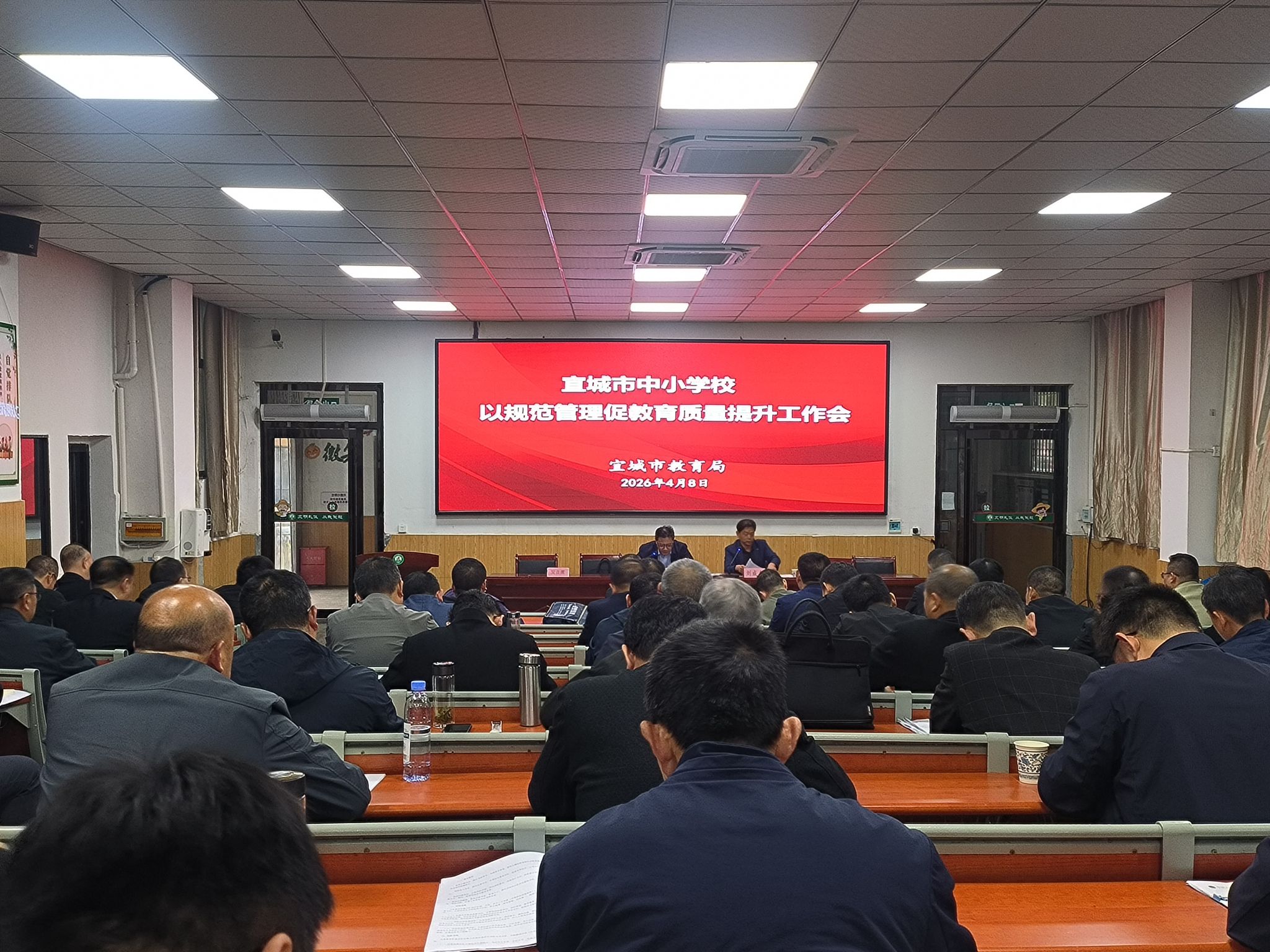 4月8日下午,宜城市中小学校以“规范管理促教育质量提升”为主题的工作会在西街小学阶梯会议室顺利召开。该市教育局主要领导、分管领导及各相关科室负责人,各镇(街道)中心学校督学、市直及乡镇中小学校长共100余人齐聚一堂,共话规范管理,共探提质路径,凝聚教育高质量发展共识。