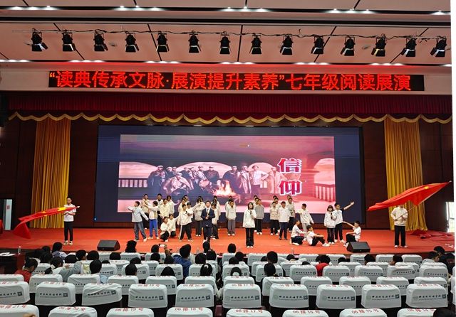 4月8日下午,竹溪县城关初级中学以“读典传承文脉·展演提升素养”为主题,在学校报告厅举办七年级课本剧、情景诵读展演活动,七年级师生同观,以经典为基,以艺韵为媒,扬中华文萃,育学子才情。