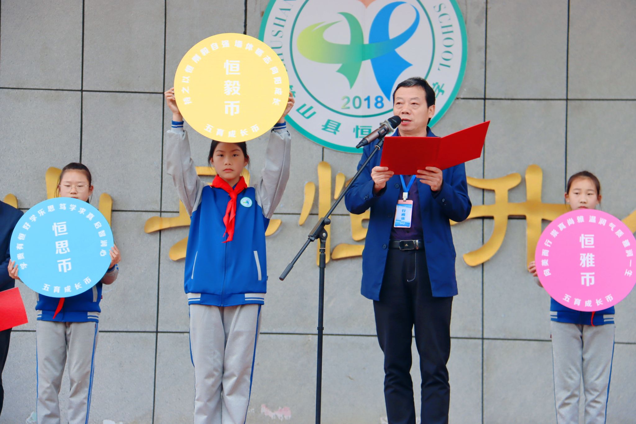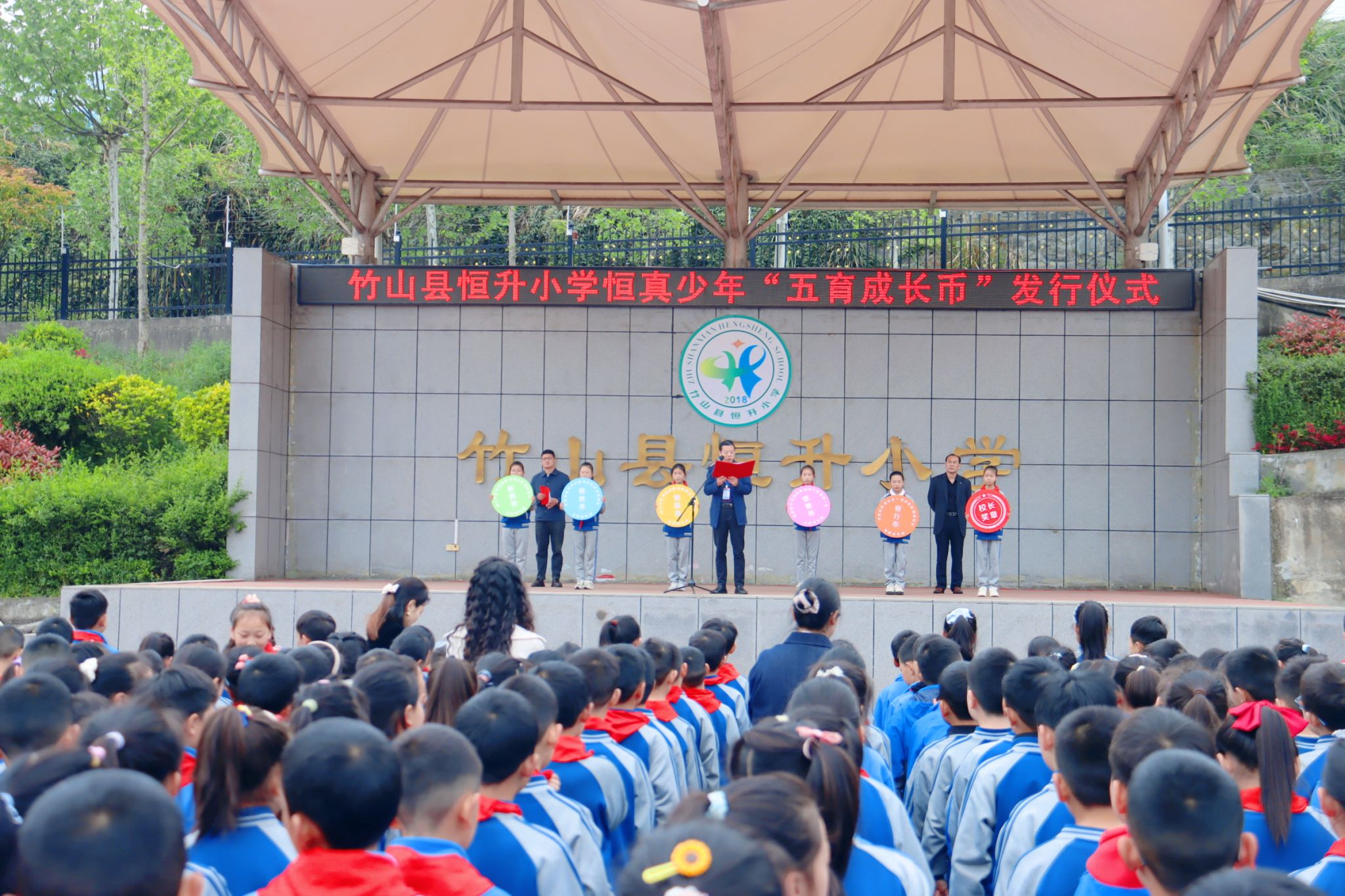 为全面落实“五育并举”教育理念,激励学生全面发展,4月9日,恒升小学举行“恒真少年”五育成长币发行仪式,全体师生共同参与此次校园特色激励体系启动仪式。