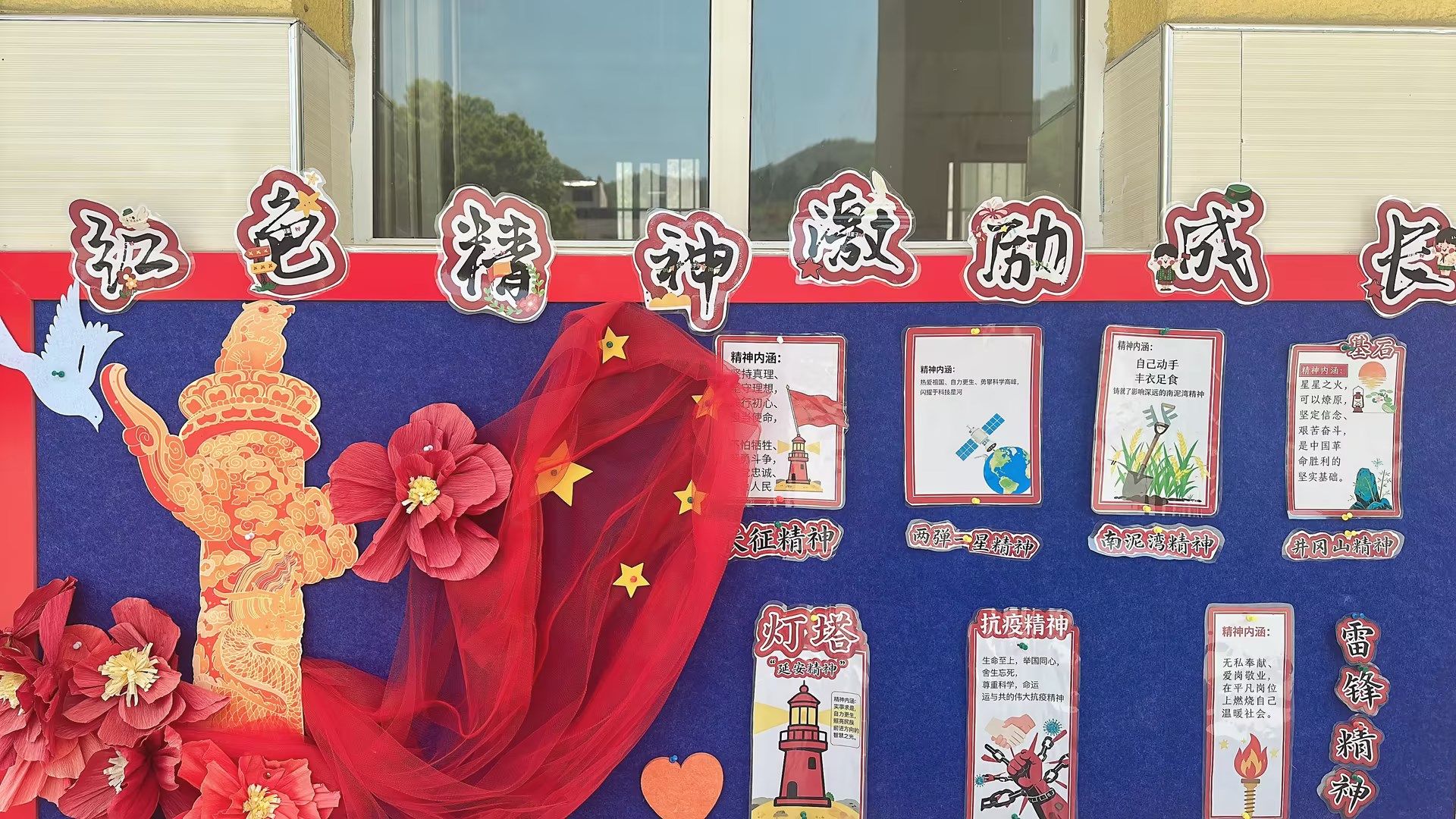 学校立足本土红色资源,对校园文化长廊、楼道墙面、班级阵地进行系统性升级打造。教学楼走廊内,“党的光辉历程”“红色经典名言”“红色精神”“新时代少年使命”等板块错落有致,让学生在日常行走中回望历史、感悟精神。各班同步打造“红色文化角”,张贴英雄人物画像、展示学生红色主题手抄报,营造“班班有红色、处处有教育”的浓厚氛围。