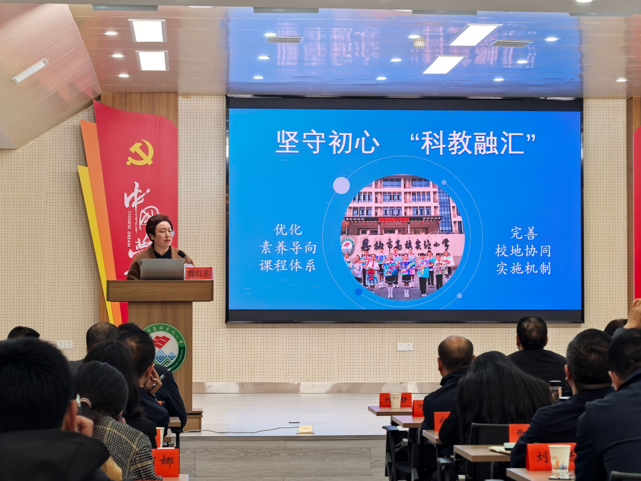 活动中,该校党总支书记魏红彩以《深耕硒都沃土 赋能科学育人》为题作专题分享,系统介绍该校破解科学教育“资源转化难、课程体系弱、落地实施虚”三大难题的实践路径,详细阐释“三个三”资源转化法、“三阶四维”课程体系、“2533”实施路径等核心成果。