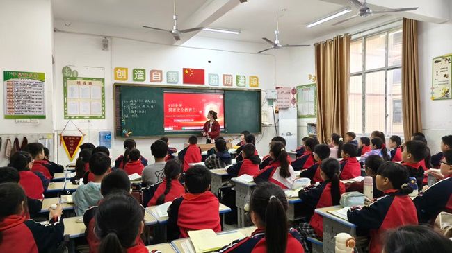 活动伊始,各班级利用班会课召开专题教育会。班主任们借助精心制作的PPT课件,从全民国家安全教育日的由来、国家安全的定义、涉及的16个重点领域(政治安全、国土安全、军事安全、网络安全等),到公民维护国家安全的权利与义务,进行了全面细致的讲解。课堂上,师生共同学习《国家安全法》《网络安全法》等法律法规,观看安全教育警示视频,让抽象的国家安全知识变得生动易懂,帮助学生深刻理解国家安全与个人生活息息相关。在讲解过程中,老师们结合小学生的认知特点,重点普及了网络安全、反间谍、防诈骗等贴近生活的安全知识,引导学生从小树立防范意识,自觉抵制危害国家安全的行为,争做国家安全的守护者。同学们认真聆听、积极互动,在潜移默化中增强了国家安全责任感与使命感。