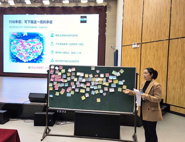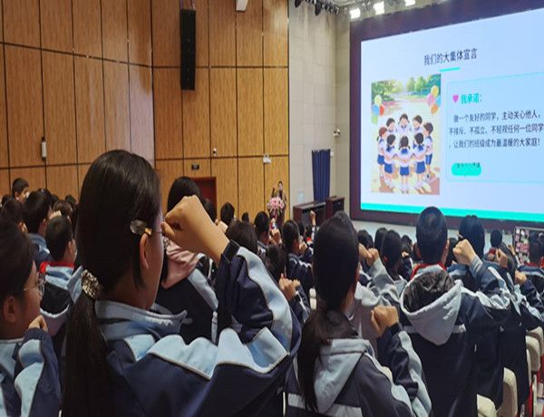 在行动承诺环节,同学们认真写下专属善意约定,张贴在“温暖承诺墙”上。一句句朴实的话语,承载着尊重、包容与互助的决心。最后,全体同学进行集体宣言,承诺不排斥、不孤立、不轻视任何一位同学,用友爱共建温暖班集体。