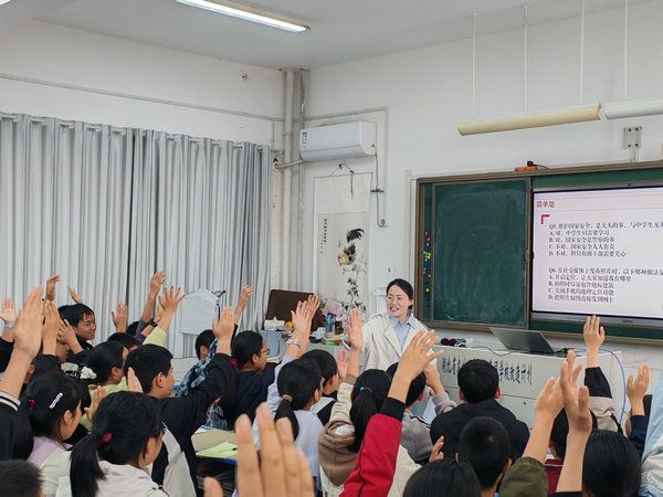 活动伊始,师生共同唱响《歌唱祖国》,在激昂的旋律中厚植爱国情怀。随后,镇人民政府宣讲人李丹结合《国家安全法》定义,通俗解读国家安全涵盖的政治、国土、网络等16个领域,打破“国安离青少年很远”的认知误区。通过分析中学生偷拍军事设施、网络“翻墙”等真实案例,拆解网络“隐形陷阱”,强调不随意分享敏感信息、不参与非法网络活动的重要性。活动还设置了有奖问答环节,以趣味互动强化知识记忆,现场师生热情高涨。
