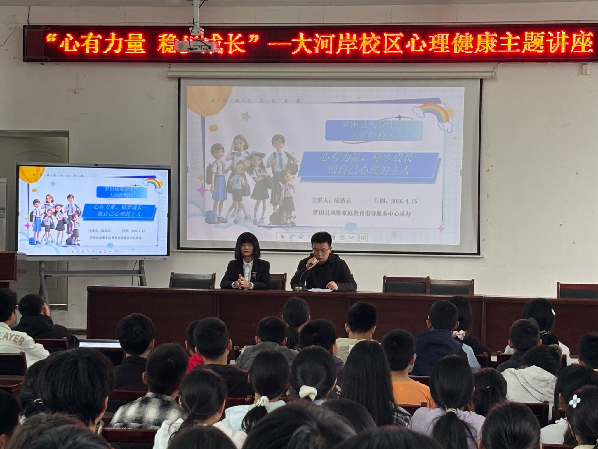 为引导学生正确认识青春期身心变化,提升心理健康素养,学会自我调节与保护,4月15日,罗田县实验中学大河岸校区特邀罗田县凤雏家庭教育指导服务中心陆洁云老师,开展以“心有力量,稳步成长——做自己心理的主人”为主题的心理健康专题讲座。