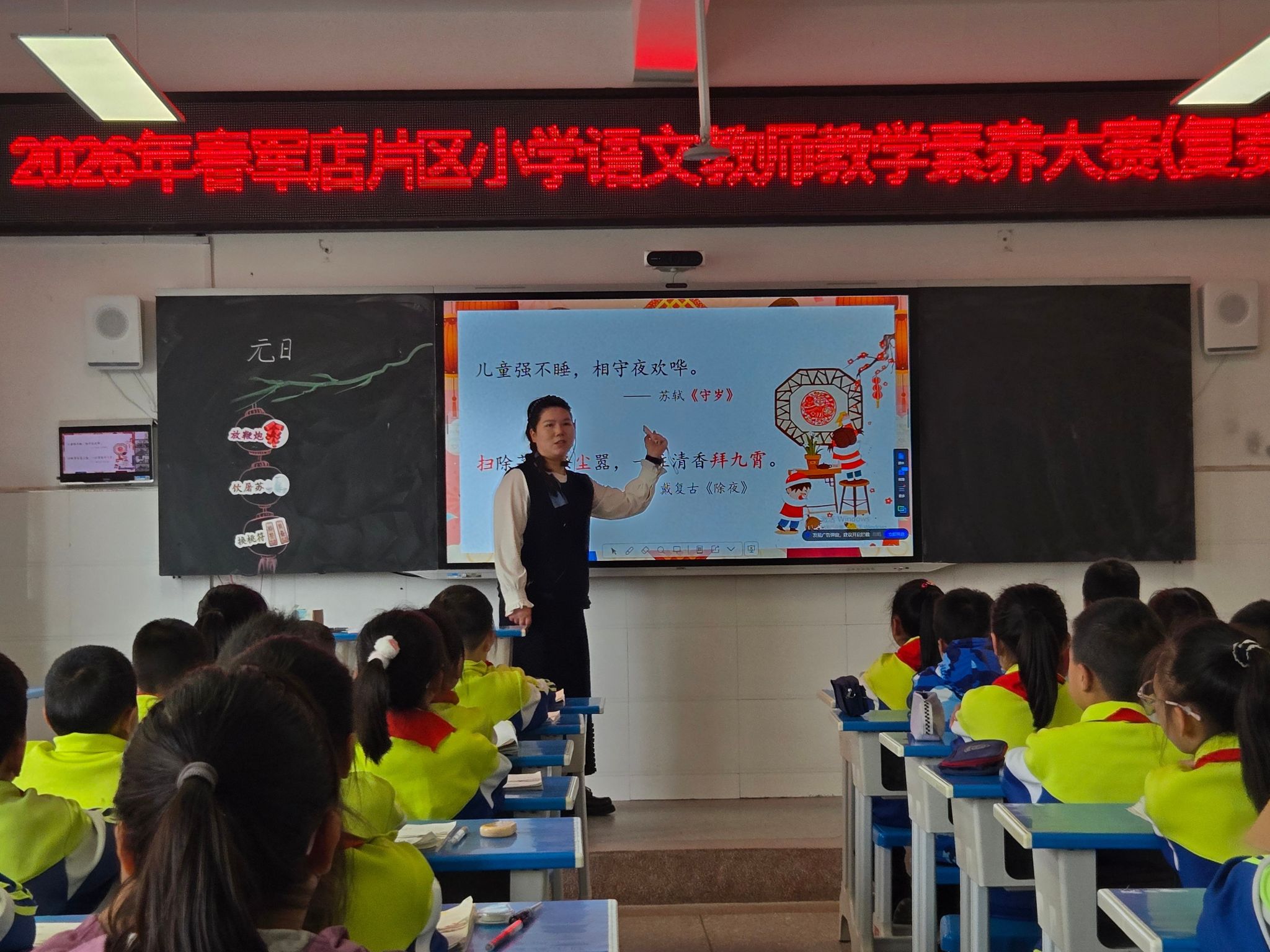 活动中,片区各小学推选的优秀语文教师们精心准备,课堂亮点纷呈。教联体核心学校军店小学骨干教师任珊珊 执教《海上日出》,以细腻的引导带领学生领略大自然的壮丽景观,注重朗读感悟,课堂生动有序。窑淮、化龙学校三名青年教师分别讲授了《古诗三首》、《母鸡》和《董存瑞舍身炸暗堡》,他们或通过多样化的教学方法,引领学生走进古诗意境,感受传统文化魅力;或通过对比教学策略,在真挚的情感中激发学生对小动物的关爱之情;或在紧凑的教学节奏中,将爱国主义教育融入课堂。比赛现场,骨干教师们率先垂范、深耕细研,用扎实的教学功底,呈现了一堂堂高质量、有温度、有深度的小学语文示范课,充分展现了小学语文骨干教师的专业素养与教学风采。