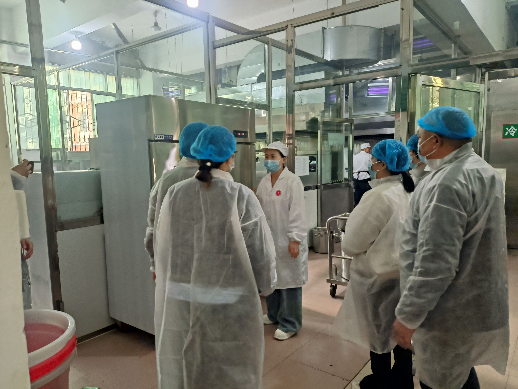 活动由该校分管食品安全副校长王辉主持。他详细地介绍了学校“中央厨房+微厨房”食堂运营模式,把学校对每周食谱的审定和对食材的严格监督等情况进行了说明。活动中,部分代表换上工装、戴好帽子口罩,走进食堂操作间,实地查看了食材清洗、切配、烹饪、备餐等区域,近距离观察了工作人员的操作流程。食堂负责人柴经理向各位代表细致地讲解了作为第三方餐饮公司食材的采购运输、农残检测、食材溯源管理等制度。同时介绍了餐具消毒、从业人员健康管理、食品留样等日常规范,并表示一定把校园餐办成家长和孩子们心目中放心餐、营养餐。