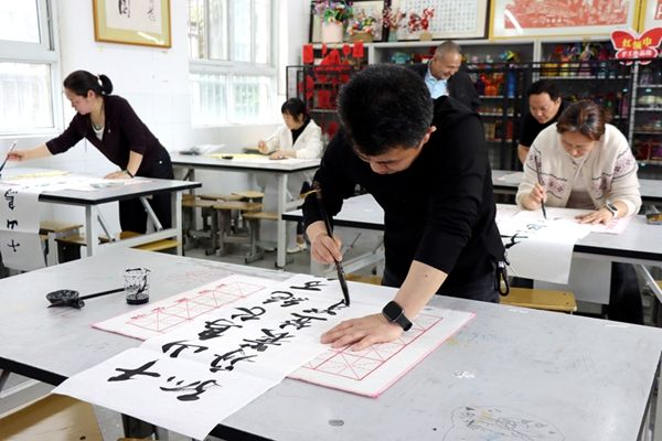 4月17日上午,竹山县张振武小学美术室十余位老师伏案悬腕,宣纸上的毛笔字一笔一画刚柔并济。——这是该校2026年教师基本功大赛毛笔字字比赛的现场。