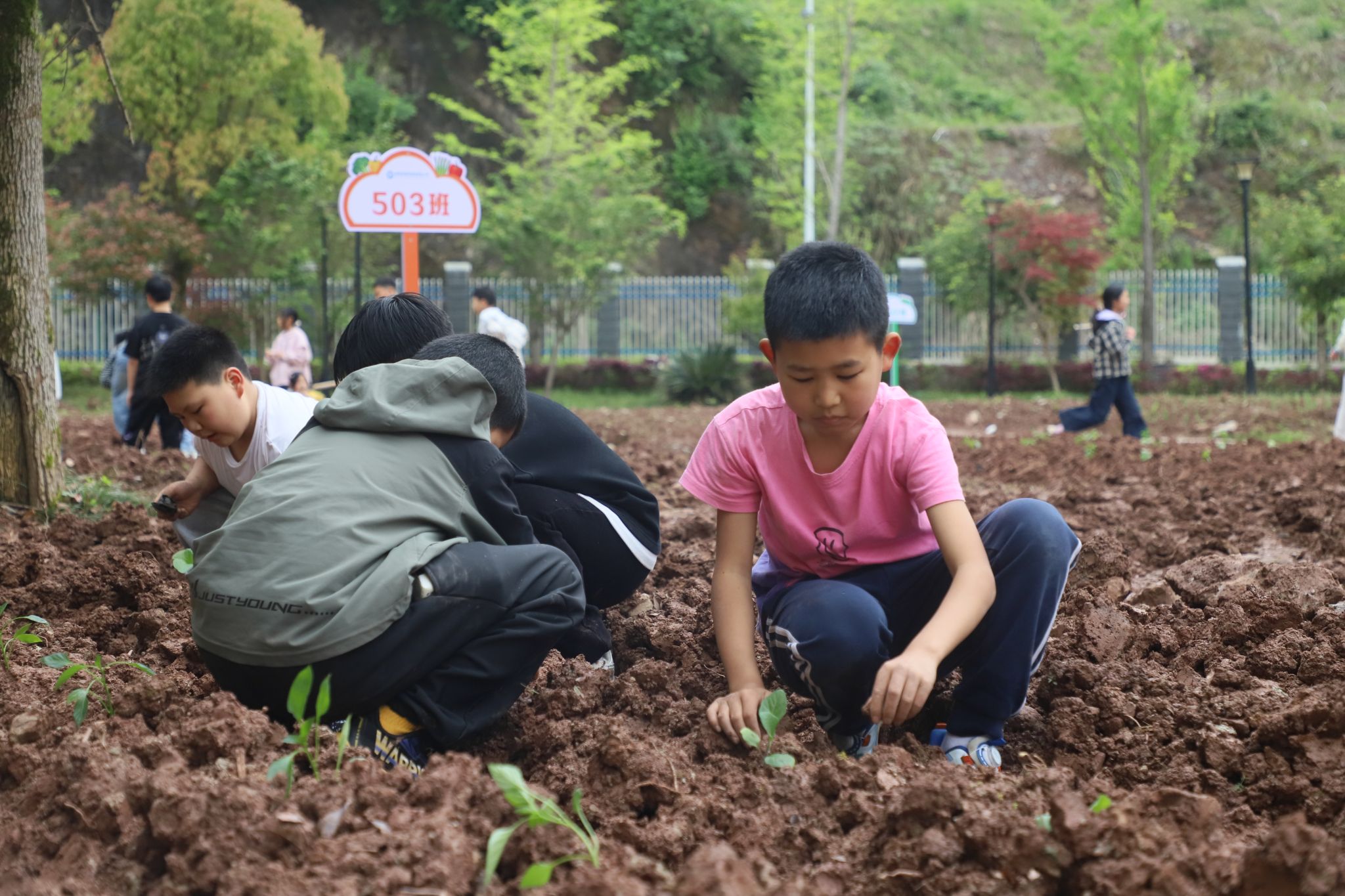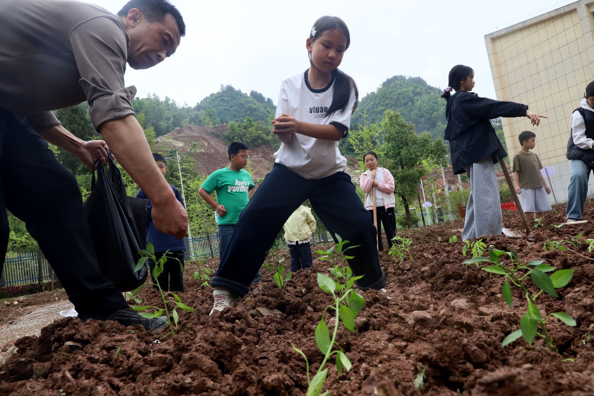 4月17日,宣恩县第四民族实验小学的劳动实践基地里一派热闹景象,该校组织学生开展辣椒、茄子、番茄等蔬菜栽种实践活动,让学生在泥土芬芳中体验劳动乐趣。