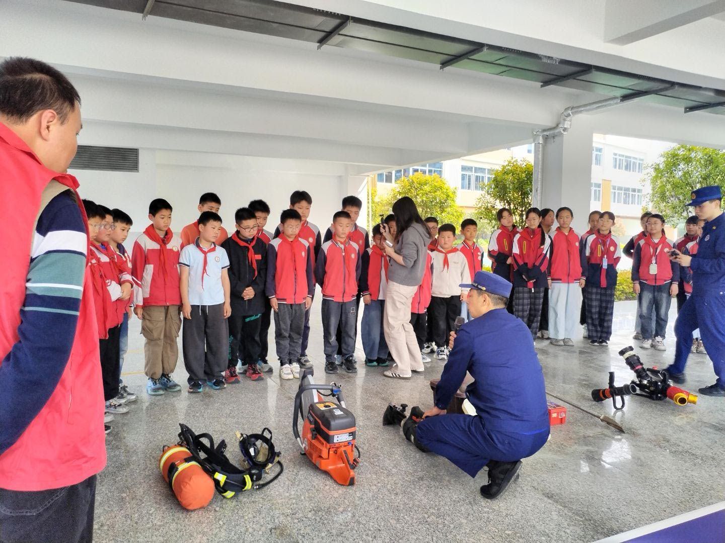 为进一步强化校园消防安全防线,提升全体师生消防安全意识和应急处置能力,4月17日上午,人民小学朝阳路校区联合茅箭区消防救援站、茅箭区二堰街办擂鼓台社区,共同举办“学消防·练逃生·会自救”消防科普体验日活动,以实战演练与实景教学相结合的方式,为师生带来一堂生动实用的消防安全教育课。