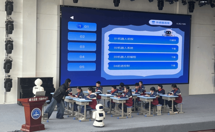 紧随习作课之后,学校精心开展机器人特色课堂,将科技教育融入日常教学。智能机器人助教亮相后,凭借灵动的互动形式,迅速激发了同学们的探索兴趣。课堂上,机器人辅助教学,让科学知识更加直观易懂,让同学们近距离互动体验,在生动有趣的氛围中感受科技魅力,有效培养了科学探究精神与创新意识,教师们也在一旁悉心引导,让科技课堂充满乐趣、富有实效。