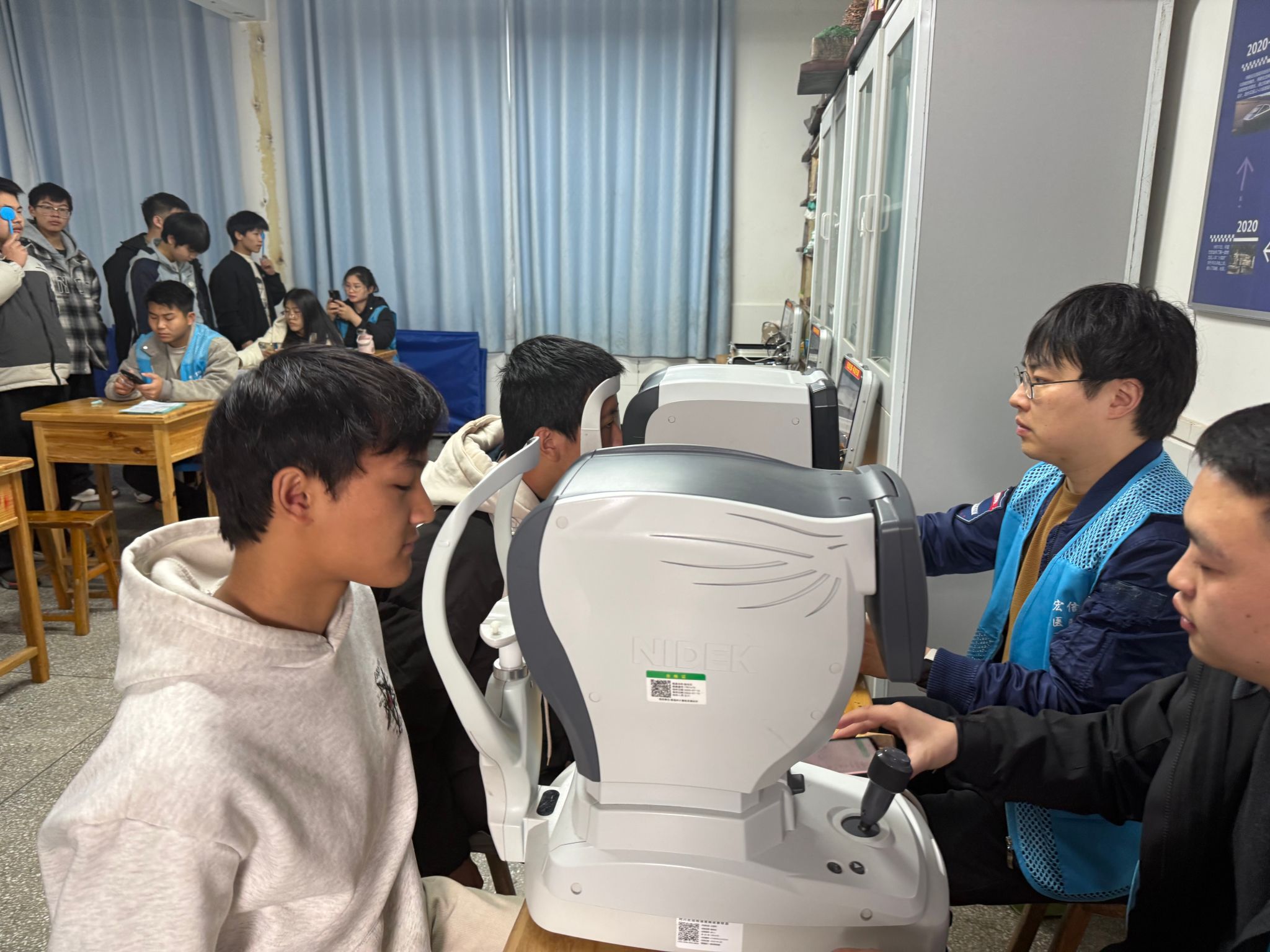 筛查现场秩序井然,工作人员使用专业设备,细致高效地为每位学生进行了裸眼视力检测、电脑验光等多项检查。老师们全程引导协助,学生们积极配合,整个流程规范有序。本次筛查覆盖全校学生,检测结果将被详细记录。负责人反映,后续学校将把筛查结果及时反馈给家长,确保家校信息畅通,共同关注孩子视力变化。