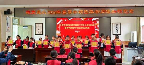 最美人间四“阅”天,书香浸润伴成长。4月22日,十堰市郧阳区城关镇第三完全小学2026年春季学期“整本书阅读”知识竞赛决赛圆满落幕。本次活动以“书香启智趣·阅读破难关”为主题,聚焦三、四年级学生阅读素养提升,以赛促读、以赛促学,旨在进一步深化校园阅读教育,营造爱读书、读好书、善读书的浓郁氛围,助力学生在阅读中涵养心智、提升核心素养。