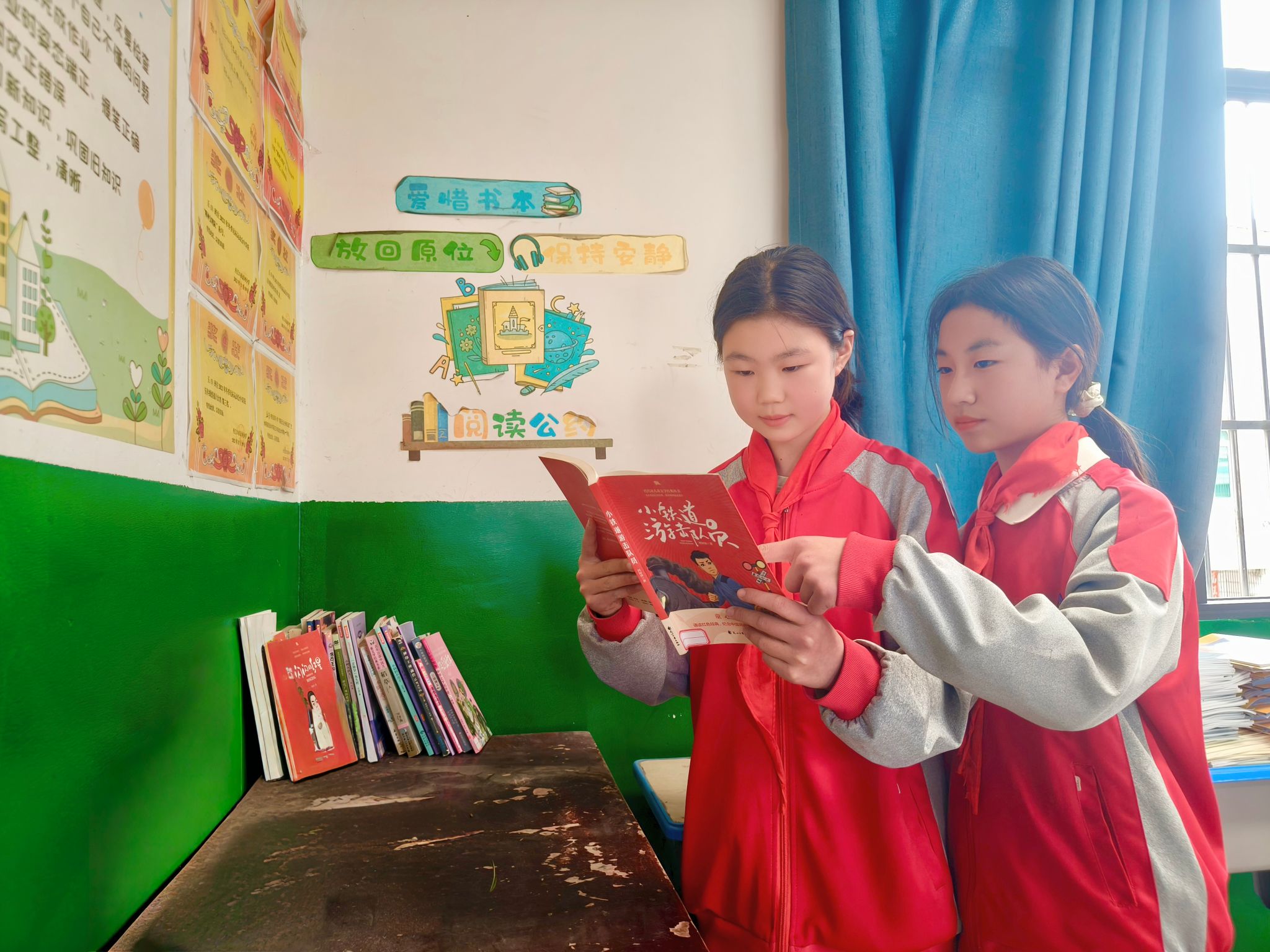 4月22日,丹江口市浪河小学五(3)班教室内学生常文馨和王妙涵正在一起,专注阅读红色经典书籍《小铁道游击队员》,不时低声交流书中的精彩片段。这一幕,正是该校深入推进4月“红色经典・薪火相传”主题读书活动、落实“书香水都・阅润成长”行动的生动缩影。为让红色基因浸润校园,该校组织各班级精心打造红色经典阅读图书角,让红色书籍触手可及,让书香飘满每一间教室。