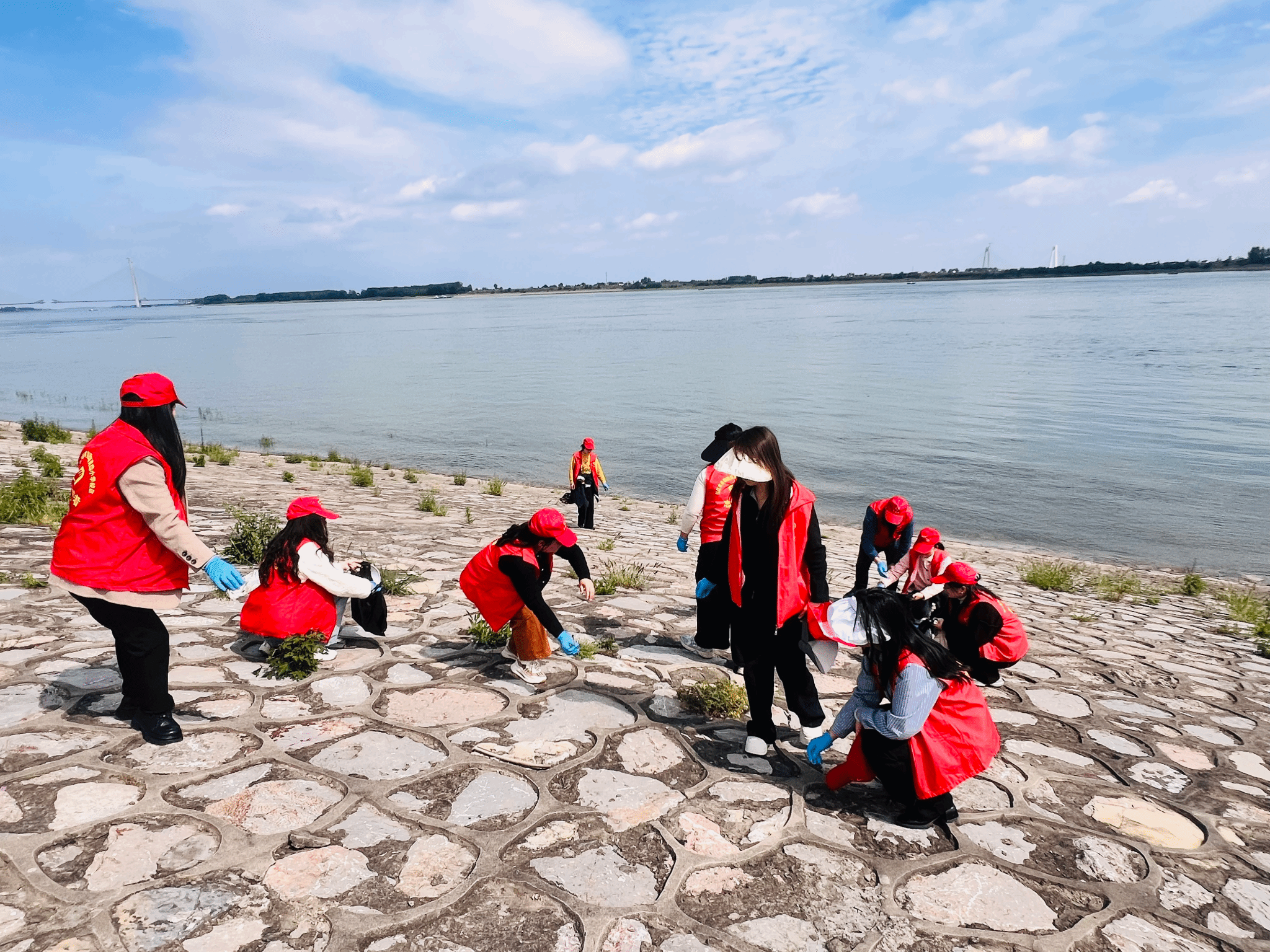活动现场,党员教师们身着红色志愿马甲,手持垃圾袋、垃圾夹等工具,沿着长江岸线有序开展净滩行动。大家分工协作、密切配合,认真清理岸边的塑料瓶、包装袋、枯枝杂草等各类垃圾,细致排查卫生死角,不放过一处杂物、不遗漏一个角落。经过近两个小时的辛勤劳作,长江岸线环境焕然一新,干净整洁的江滩与清澈的江水相映成趣,党员教师们用双手为母亲河“减负”,用汗水诠释责任与担当。