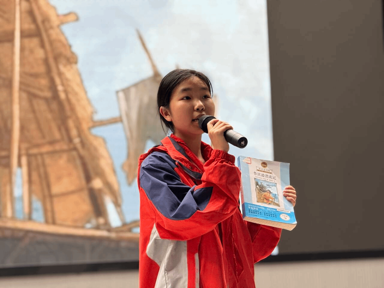 本次读书节形式多样、亮点突出。在学生好书推荐交流活动中,同学们纷纷走上讲台,分享心中挚爱。六年级学生李丽娜深情推荐经典名著《鲁滨逊漂流记》,生动讲述了主人公在荒岛之上顽强生存、勇敢探索的故事,呼吁同学们“在困难面前不退缩,像鲁滨逊一样保持乐观与坚韧”。她的分享语言流畅、情感真挚,引发全场共鸣,也让更多同学对这部经典文学产生了浓厚兴趣。