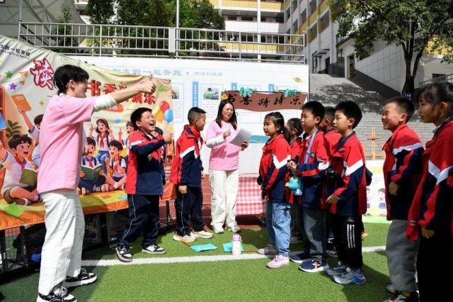 本次活动突出党建、学科、家校共育三大特色,将组织优势转化为育人实效。活动以亲子朗诵为温情启幕,党员教师带头示范、家校携手诵读,在琅琅书声中传递文字力量,彰显家校协同育人合力。紧扣语文核心素养,现场创新设置书香猜猜乐、乒乓拼诗乐、妙画猜猜猜、文海辨字阁、飞花转盘令、书海套圈乐、阅趣摇骰子7大趣味闯关摊位,把诗词积累、汉字辨析、阅读理解、创意表达融入游戏化体验,让学生在玩中学、乐中悟,打破传统阅读模式,实现“沉浸式、趣味化、全员化”阅读。