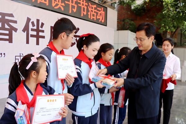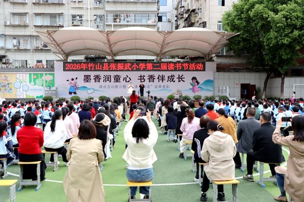 4月23日上午,在第31个世界读书日到来之际,竹山县张振武小学围绕“墨香润童心 书香伴成长”主题,隆重举办第二届校园读书节诵读展示暨“整本书阅读”成果颁奖活动,全校师生及80余名家长代表参与其中。