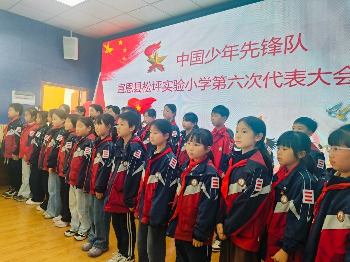 4月23日中午,宣恩县松坪实验小学第六次少先队代表大会在学校大会议室顺利召开。这次大会以“强国复兴有我·争当新时代好队员”为主题,全校73名代表一起参加了这场红领巾盛会。