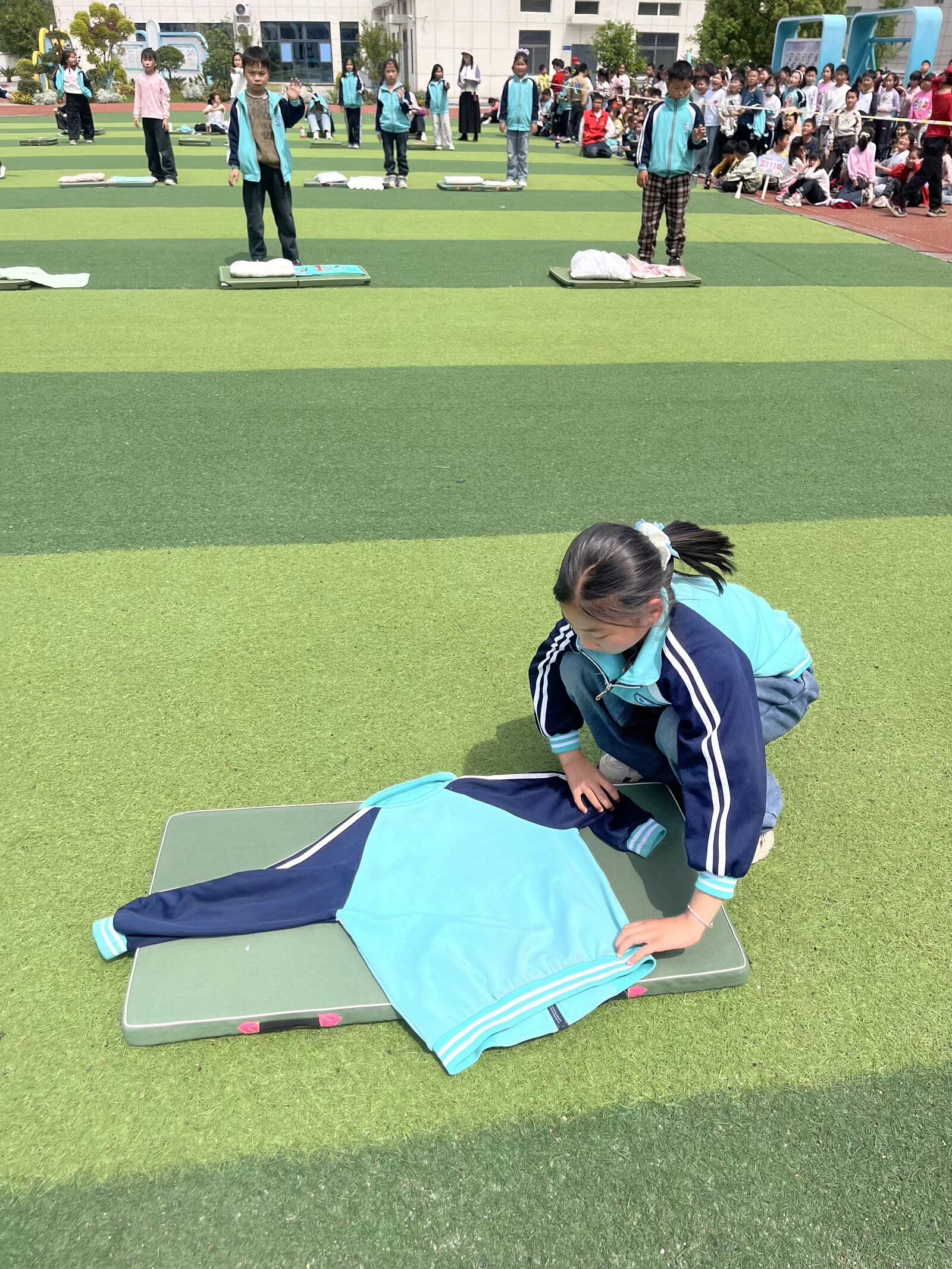 三年级的挑战环节更是看点十足:叠校服的选手们把校服铺平、对折、压平,转眼就叠出棱角分明的 “豆腐块”;套枕套时,他们灵活地把枕芯送进枕套,轻轻一拍就服服帖帖;扎辫子的小选手动作轻柔,不一会儿就编出了整齐又漂亮的麻花辫,引来现场阵阵喝彩。