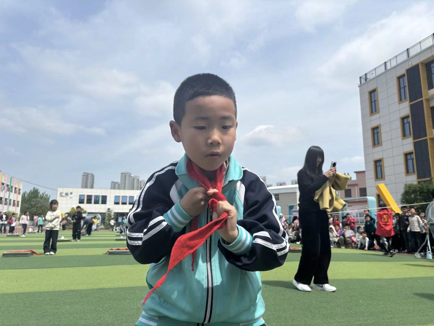 二年级的赛场满是成长的仪式感:系红领巾时,孩子们指尖轻绕、对齐、拉紧,很快就系出了方方正正的红领巾;穿鞋带、系鞋带的动作一气呵成,利落又熟练,举手投足间透着少年的朝气。