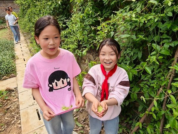 作为学校劳动教育的“第二课堂”,百草园自2022年建成以来,已经成为孩子们认识自然、感知耕耘意义的实践阵地,从翻土播种到浇水除草,每一株草木的成长都藏着师生们的劳动痕迹。这次采摘的金银花会允许学生带回家洗净晾晒后泡茶喝,让学生在清润的茶香里,真切感受到“一分耕耘一分收获”的意义。