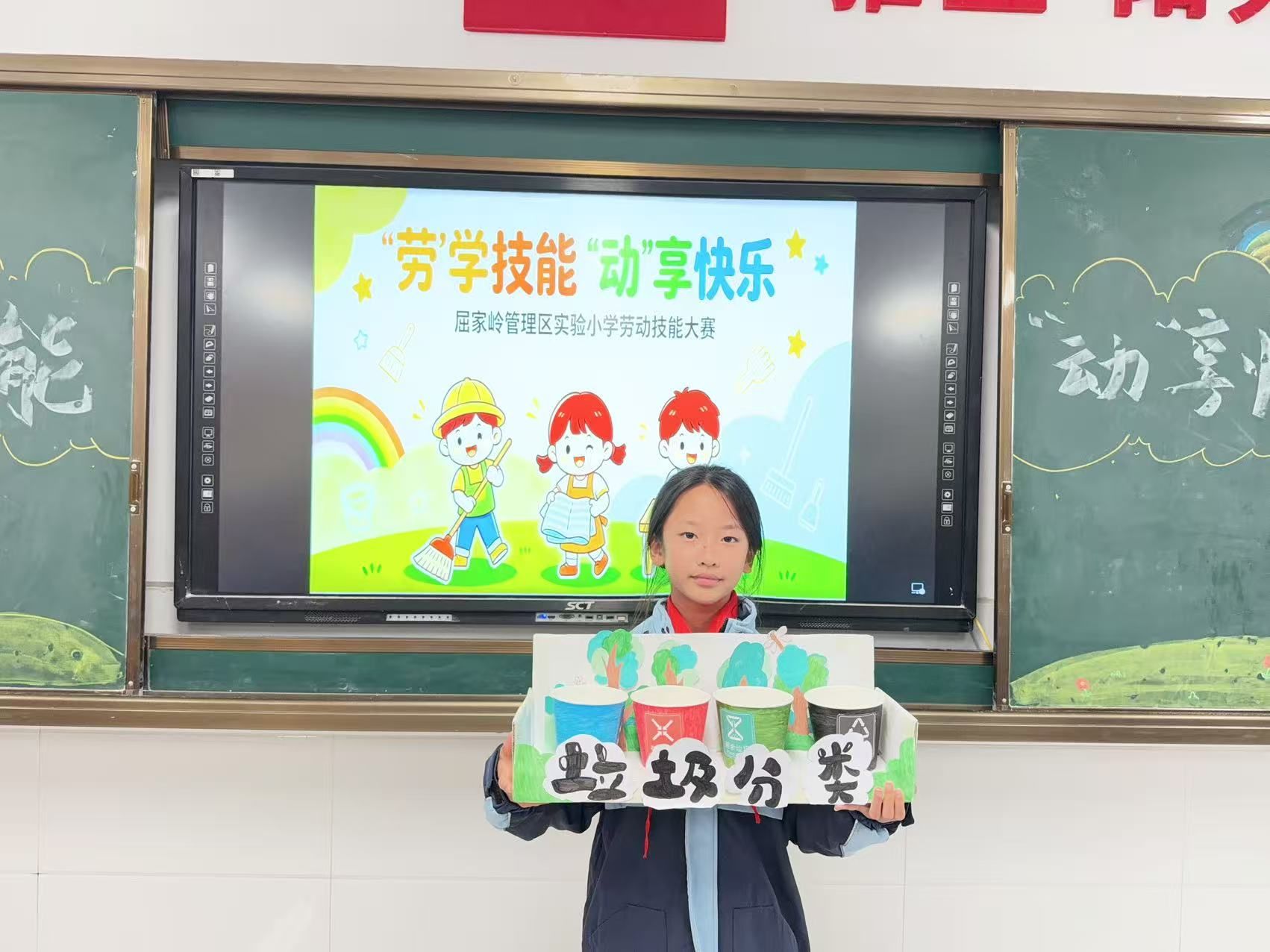 中年级赛场技能尽显,三年级选手动作利落,扎马尾干练整齐,系鞋带娴熟迅速,绳结紧实美观;四年级“变废为宝”创意无限,易拉罐、废旧纸盒、塑料瓶等闲置物品,在同学们的巧思与巧手下,摇身变为精致笔筒、创意摆件、实用收纳盒,让废旧材料焕发全新价值。