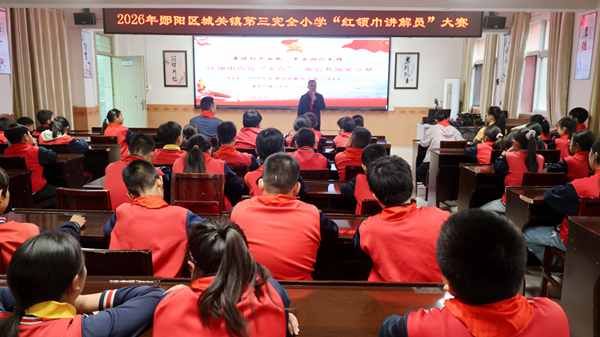 本网讯 为厚植少先队员红色爱国情怀,赓续红色血脉、传承中华优秀文脉,引导少年儿童了解家乡历史、讲好郧阳故事、争做时代先锋,4月28日,十堰市郧阳区城关镇第三完全小学精心组织开展2026年“讲好郧阳故事,争当时代先锋”红领巾讲解员主题大赛,全校少先队员代表齐聚现场,沉浸式参与红色宣讲实践育人活动。