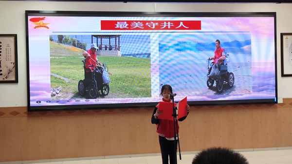 活动中,参赛少先队员们精神饱满、意气风发,以童言童语倾情宣讲红色故事、榜样事迹与家乡发展历程,声情并茂、感染力十足。六(1)中队队员徐一鸣以“红领巾点亮‘支点’,同心共筑家乡梦”为宣讲主题,深情追忆红军长征峥嵘岁月,回望革命先辈攻坚克难、奋勇前行的光辉奋斗历程,带领现场师生重温长征精神内核,感悟革命初心使命。四(1)中队队员江诺曦以“轮椅上的守水卫士”为宣讲主线,生动讲述本土榜样杨进举的感人事迹。据悉,45岁的杨进举八年前因意外车祸失去行走能力,常年与轮椅为伴,但他身残志坚、自强不息,从未向命运挫折低头,始终坚守公益初心,身着志愿红马甲默默投身汉江生态守护志愿服务工作,用残弱身躯守护一江碧水、筑牢生态防线,平凡坚守彰显不凡担当,感人事迹让现场师生深受触动、倍感动容。五(1)中队队员郭鑫宇以“赓续长征红色血脉 争做新时代红领巾”为主题,回望九十年初心不改、薪火相传的峥嵘岁月,细数万里长征艰苦卓绝、震撼世界的光辉过往,铭记镌刻在历史丰碑上的革命壮举,让长征精神深深扎根在每一位少先队员心中。