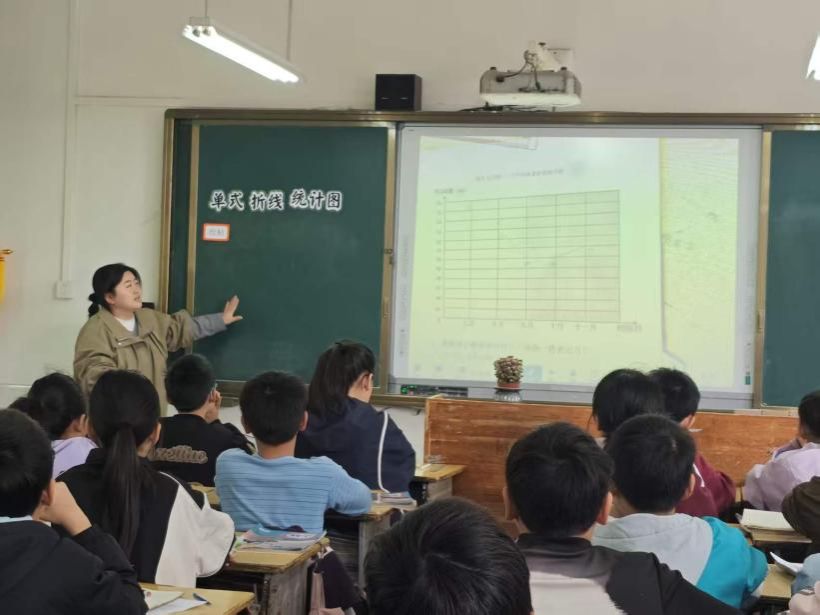 数学学科聚焦《折线统计图》和《比例的意义》两大课题。《折线统计图》由蔡丹丹、侯家欣、刘梅三位老师同台展示:蔡老师以“体温变化”真实数据导入,侯老师聚焦“降水量统计”项目化学习,刘老师则通过“机器人行走”动画激趣——相同的知识点,不同的情境链,让数据意识在鲜活的生活应用中落地生根。《比例的意义》教学中,孙玉玲、陈凤清、姚美静、周璇四位老师立足学情:有的以照片缩放、地图比例等生活实例驱动概念建构,有的通过层层追问引导学生自主发现比例的本质,有的借助图形变式强化辨析,充分体现了“以生为本”的教学理念。