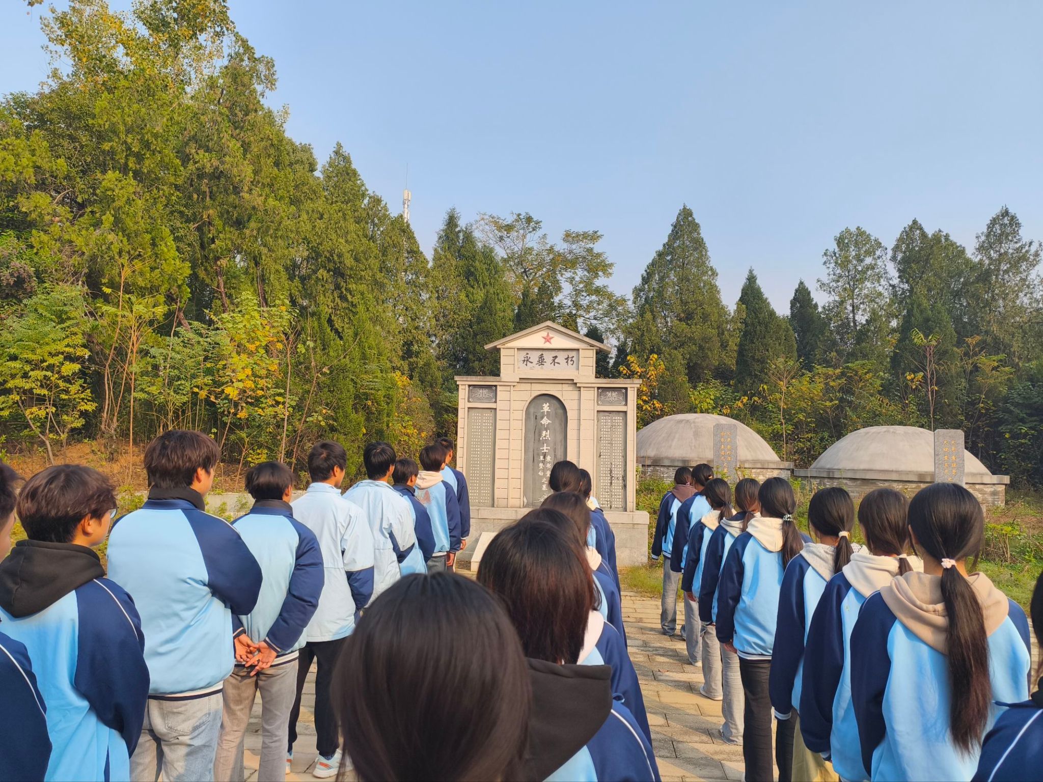11月5日,组织学生来到袁书堂纪念馆。在庄严肃穆的氛围中,师生通过珍贵的历史图片、文献资料和实物展陈,深入了解袁书堂同志的革命生涯与崇高精神。随后,师生们前往袁冲烈士陵园,在巍然矗立的革命烈士纪念碑前肃立默哀,深切缅怀为民族独立和人民解放事业英勇献身的革命先烈。在五县暴动旧址遗址,同学们实地感受那段烽火岁月,深刻体会到革命历程的艰难曲折与伟大胜利的来之不易。这一堂“行走的思政课”,让红色记忆鲜活起来,使爱国主义情怀深深植根于学生心中。
