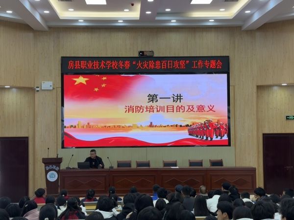 为切实加强校园消防安全管理,提升师生消防安全意识和应急处置能力,12月11日,十堰市房县职业技术学校组织各年级学生代表及教职工,开展“消防明白人”“防火灾百日攻坚”“消防知识”系列培训活动。