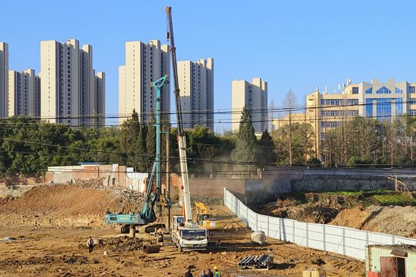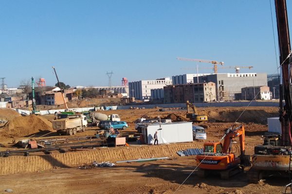 1月8日,冬日的暖阳洒满丹江口市汉江科技学校校园,为原本宁静的校园镀上了一层温暖的金光。走进学校扩建工程施工现场,映入眼帘的是一派热火朝天的繁忙景象:各类工程车辆往来穿梭,轰鸣声此起彼伏;施工人员们干劲十足,或操作机械,或绑扎钢筋,或砌筑护坡墙体,每一个环节都有条不紊地推进。
