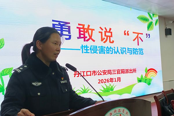 2月3日,丹江口市汉江科技学校组织召开“守护花开、共筑未来”专题讲座。三官殿派出所所长杨冬瑞受邀主讲,丹江口市教育局党组成员、该校党委书记黄娟出席活动,系部代表、班主任代表及学生代表共100余人参加。