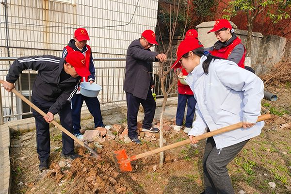春到人间草木知,正值一年添绿时。在第48个全民义务植树节来临之际,丹江口市汉江科技学校党员干部和师生广泛参与义务植树活动。3月11日上午,学校党委班子成员、青年教师、共青团员代表等50余人齐聚新港校区,为校园再添新绿,用行动践行生态责任,让“培根铸魂、向阳而生”的美好寓意在劳动中落地生根。