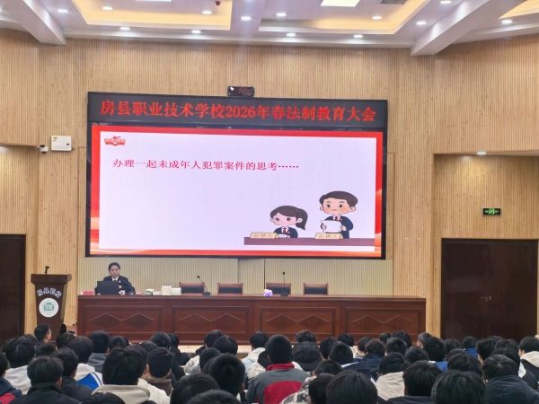 3月19日,房县职业技术学校在学术报告厅开展法治安全教育专题培训。学校特邀法律专家进校园授课,分管安全校领导、学工处全体成员,以及信息部、机电部高一全体学生齐聚现场,沉浸式接受法治安全教育洗礼。