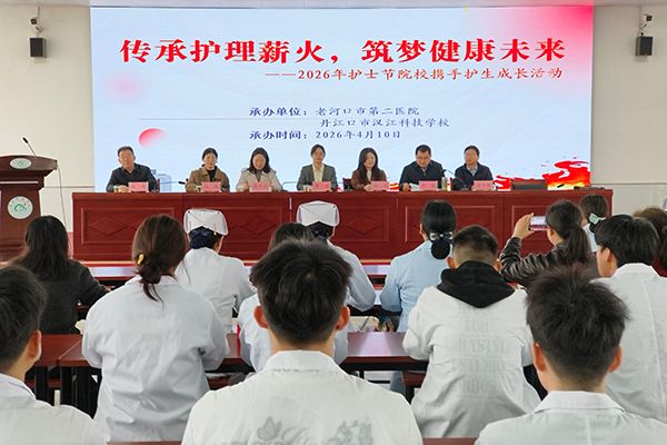 为迎接第115个国际护士节,传承南丁格尔精神,深化护理教育与临床实践融合,培育高素质护理专业人才,4月10日,丹江口市汉江科技学校联合老河口市第二医院开展以“传承护理薪火,筑梦健康未来——2026护士节护生成长计划”为主题的护士节系列活动,为护理专业学子搭建实践学习与职业认知的双向桥梁。