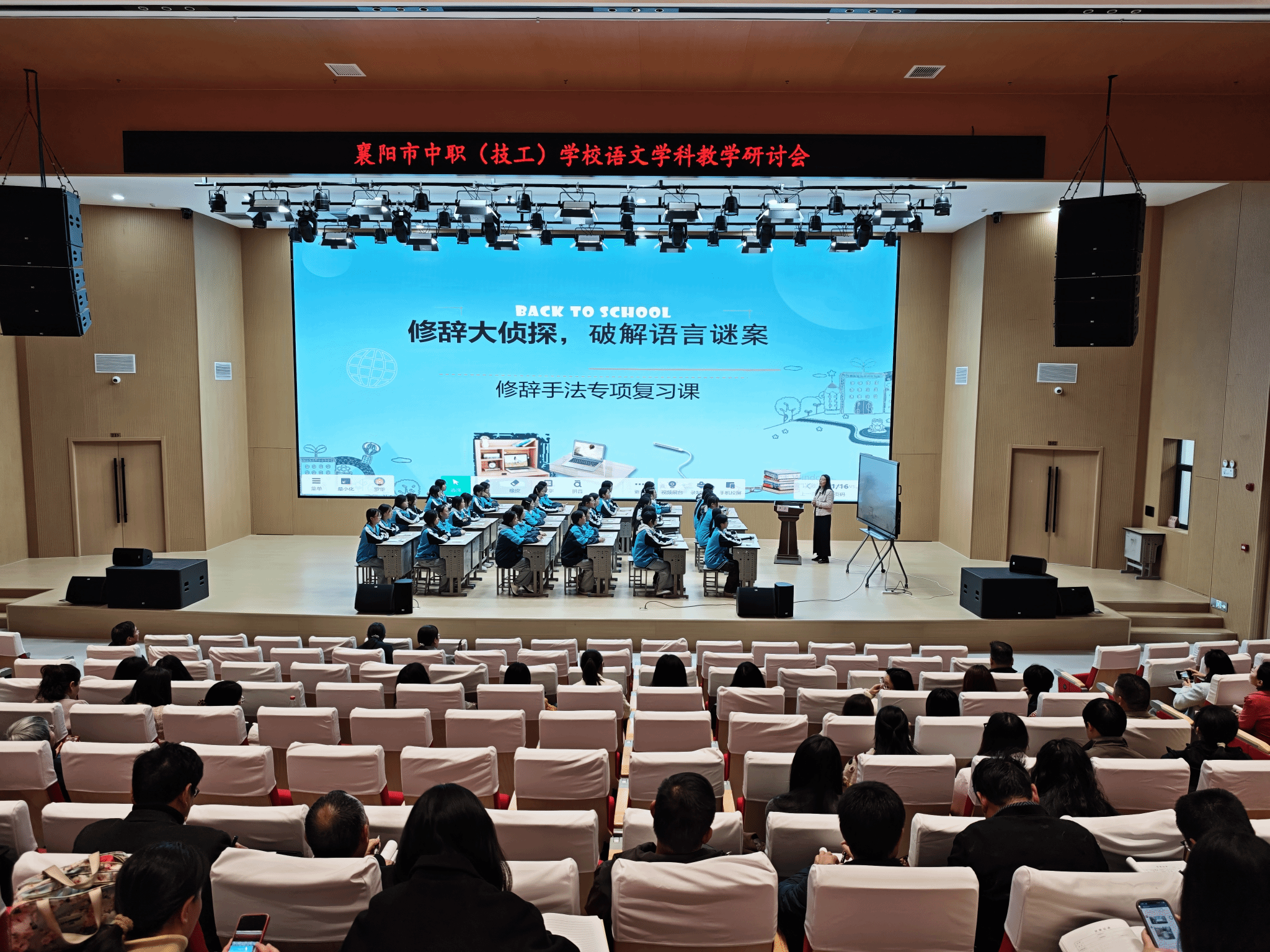 活动中,保康县中职学校的罗华老师为大家呈现了《修辞大侦探,破解语文谜案》观摩课。罗老师借助AI手段,将修辞知识转化为趣味十足的“探案”任务,引导学生主动探究,学生围绕教学目标进行了热烈的互动答疑,实现了人工智能与中职语文教学深度融合。