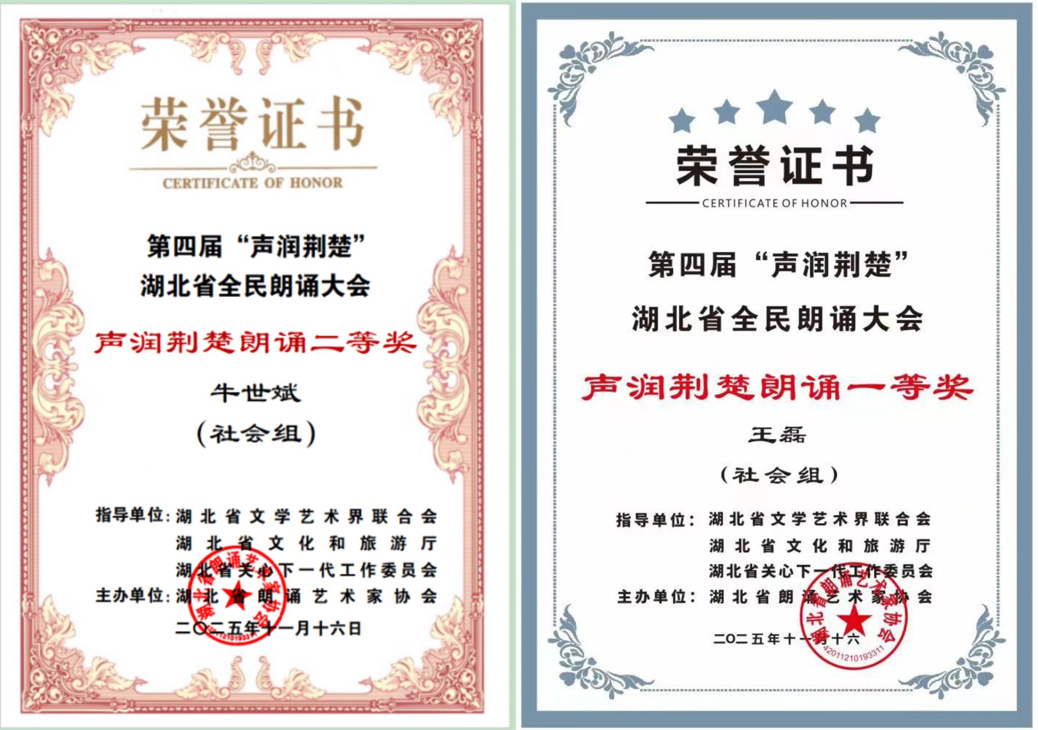 近日,第四届“声润荆楚”湖北省全民朗诵大会在武汉圆满落幕。武昌理工学院影视传媒学院教师王磊、牛世斌分别荣获朗诵一、二等奖,学校荣膺“优秀组织奖”。