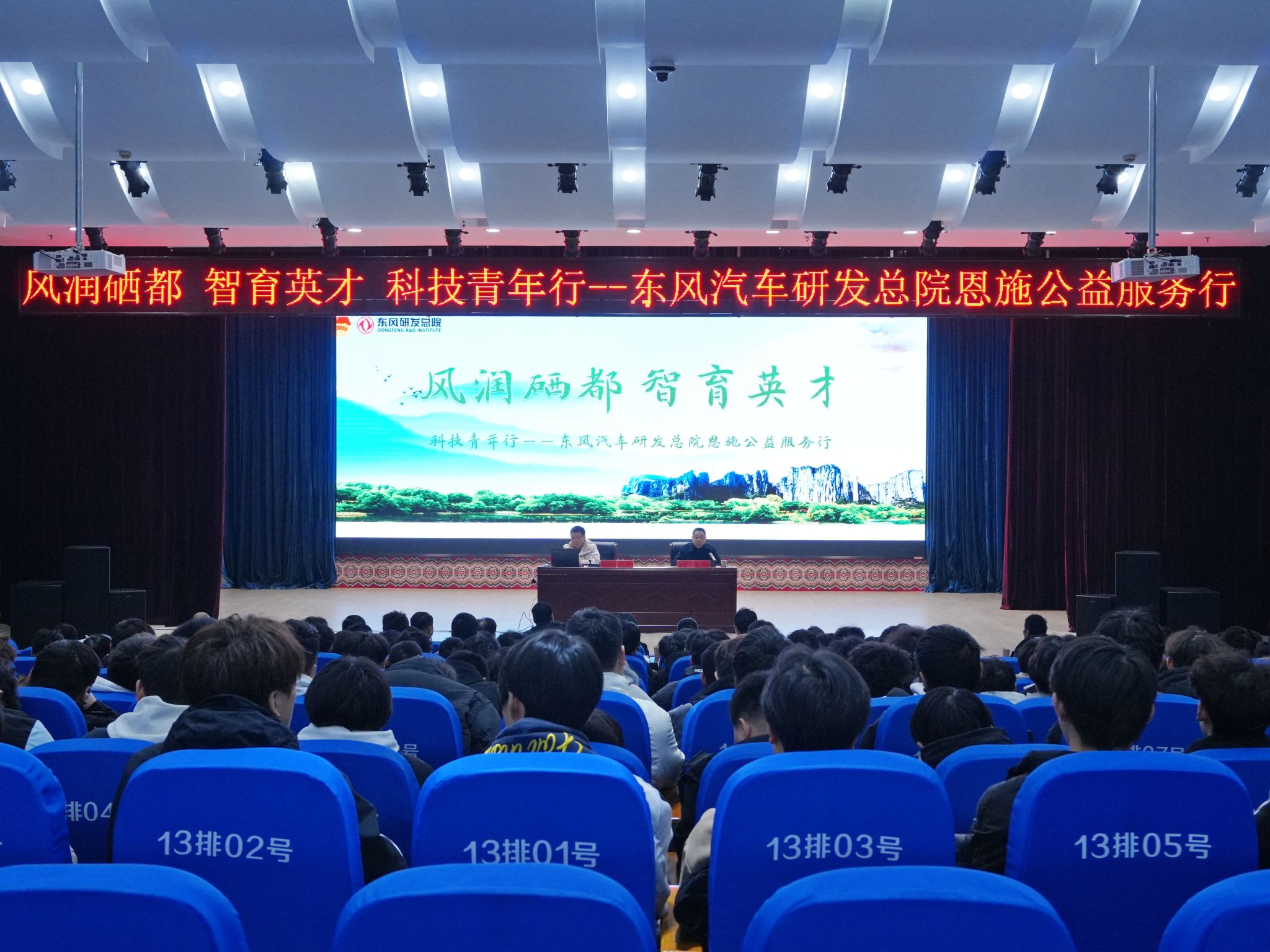 12月19日,“风润硒都·智育英才”科技青年行——恩施公益服务行活动在恩施职业技术学院举行。东风汽车集团有限公司研发总院向恩施职业技术学院、恩施州民族技工学校捐赠教学用车及专业图书,并开展技术公开课活动。