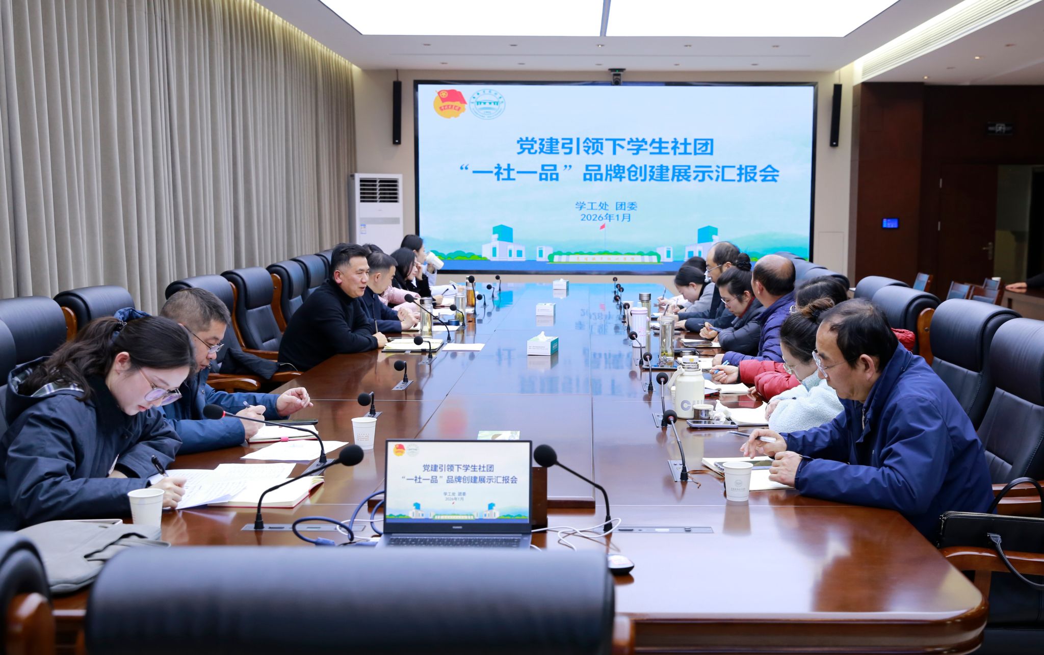 1月8日上午,襄阳职业技术学院商学院轻跃体育俱乐部“一社一品”品牌创建展示汇报会在学校顺利举行。商学院副院长、俱乐部指导老师梁光源代表俱乐部进行了题为《三球铸魂,体育育人》的专题汇报,系统展示了俱乐部在党建引领下打造特色体育育人品牌项目的规划与成果。学校副校长章伟、校团委、学工处及相关院部学工负责人、各社团指导老师参加了此次交流活动。