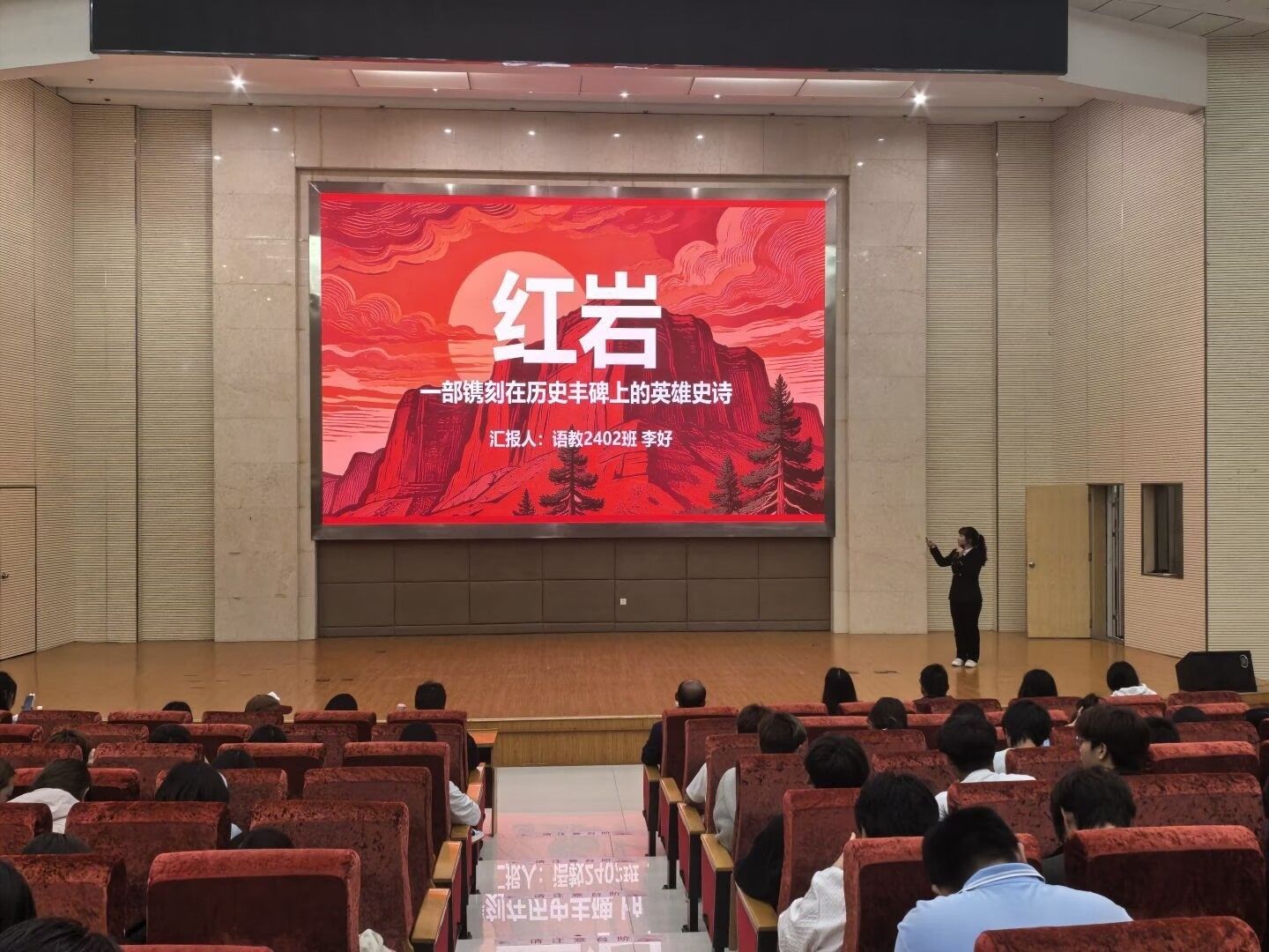 决赛现场,12位选手依次登台,围绕“与心灵对话,与书香同行”这一主题,分享了各自阅读的精彩书目。从余曼琳分享的《不被大风吹倒》到李好带来的红色经典《红岩》,从柯欣然的《革命者》到刘丹的《青铜葵花》,选手们或深情讲述、或理性剖析,结合PPT、音频、视频等多媒体手段,辅以精心准备的道具,将书中的智慧与自身的感悟娓娓道来。