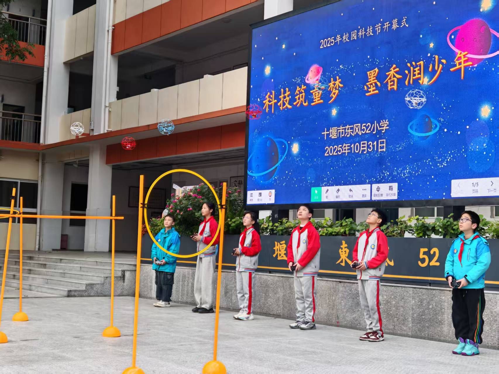 10月31日上午,以“科技筑童梦,墨香润少年”为主题的十堰市东风52小学2025年校园科技节在学校操场拉开帷幕。全校师生共同见证了这场融合科学探索与人文素养的校园盛事启动。陈艳霞副校长发表了热情洋溢的致辞,她鼓励同学们在科技节中积极动手、大胆想象、勇敢创造,将课堂所学的知识运用到有趣的实践中,尽情体验科技的无穷魅力。随着校长的话音落下,两幅主题垂幅从书品楼四楼缓缓落下,完美地诠释了本届科技节科技与人文融合的深刻内涵。...