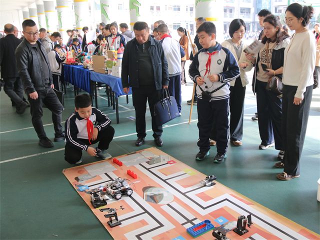 10月30日,十堰市实验小学科技节精彩启幕,本次活动以“动手体验科技,放飞科学梦想”为主题,设置“筹备—开展—总结表彰”全流程环节,实现师生全员参与。学生们分组布置展区,纷纷化身“科学向导”,在各展区带领大家解锁趣味科学奥秘,校园里科学活力与创意气息交织,处处跃动着探索的热情。活动当天,六个年级分设特色体验区,打造分层式科技探索场景。一年级以银杏叶、枫叶拼贴“小飞机”“火箭”,用自然材料绘就航天畅想;二年级“...