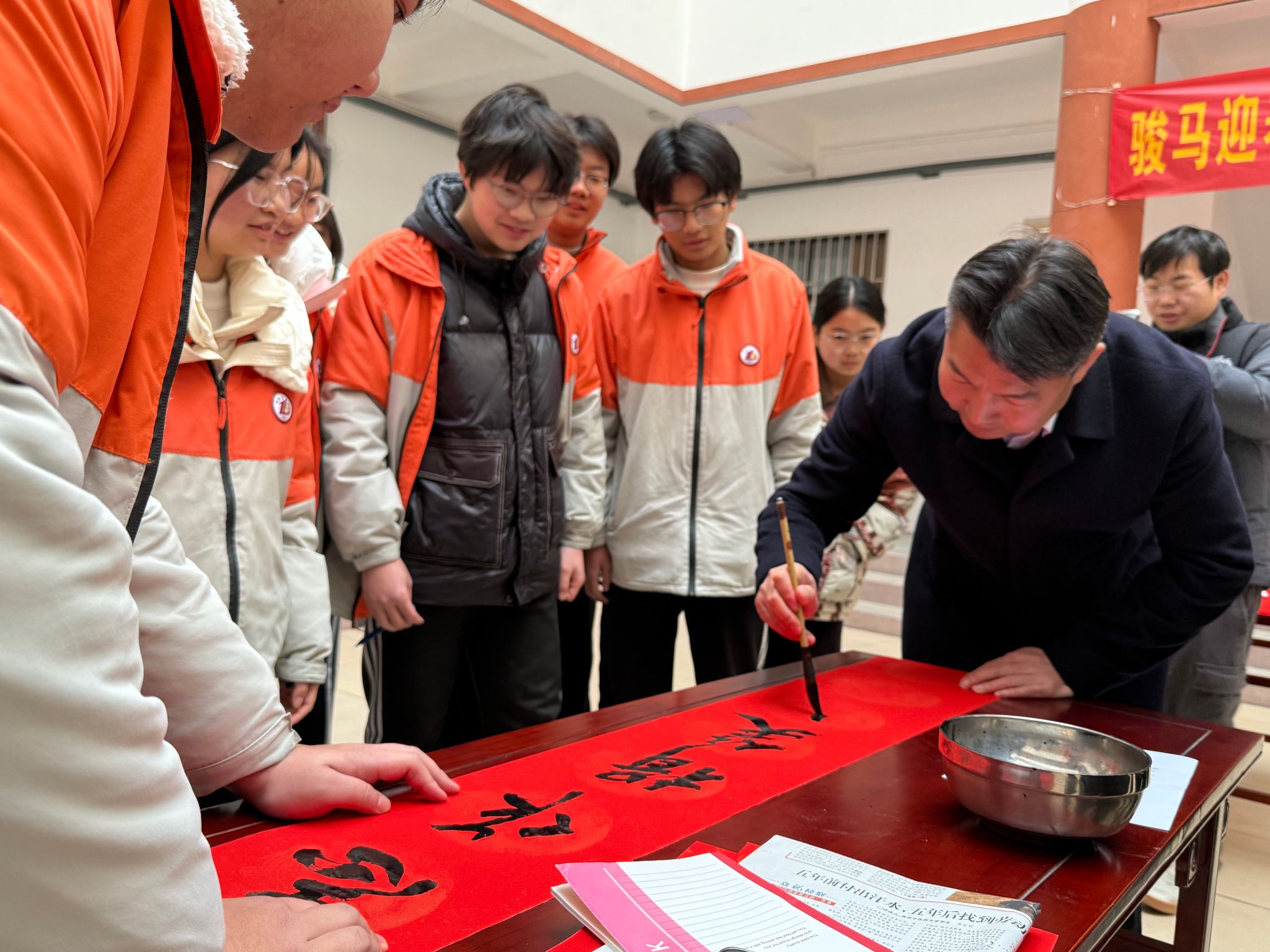 为推进优秀传统文化进校园、厚植校园文化底蕴、培育学生文化自信,2月4日上午,保康一中在逸夫楼一楼举行“骏马迎春 墨香送福”师生同写春联活动。活动以笔墨为桥梁,深度融合书法教育与新春民俗,让师生在挥毫泼墨中体悟汉字之美、传承文化基因。春联是书法艺术与民俗文化的有机融合,更是中华文脉的生动传承。为充分挖掘春联的文化内涵、彰显活动教育价值,校团委前期精心谋划,面向全校师生开展春联征集活动。活动聚焦爱国责任、...